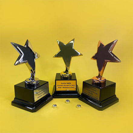 Cœur de Com met à votre disposition un large panel de trophées en métal gravé. Une partie de notre collection est de fabrication artisanale. Tous nos modèles sont personnalisables nominativement. La gravure laser est la technique de marquage recommandée pour les trophées en métal.