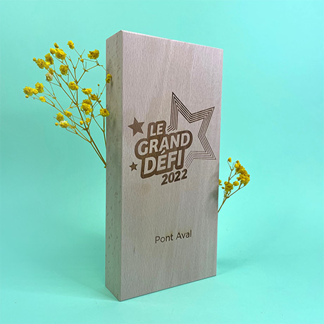 Trophée raffiné et sobre en bois de hêtre issu de forêts certifiées PEFC.